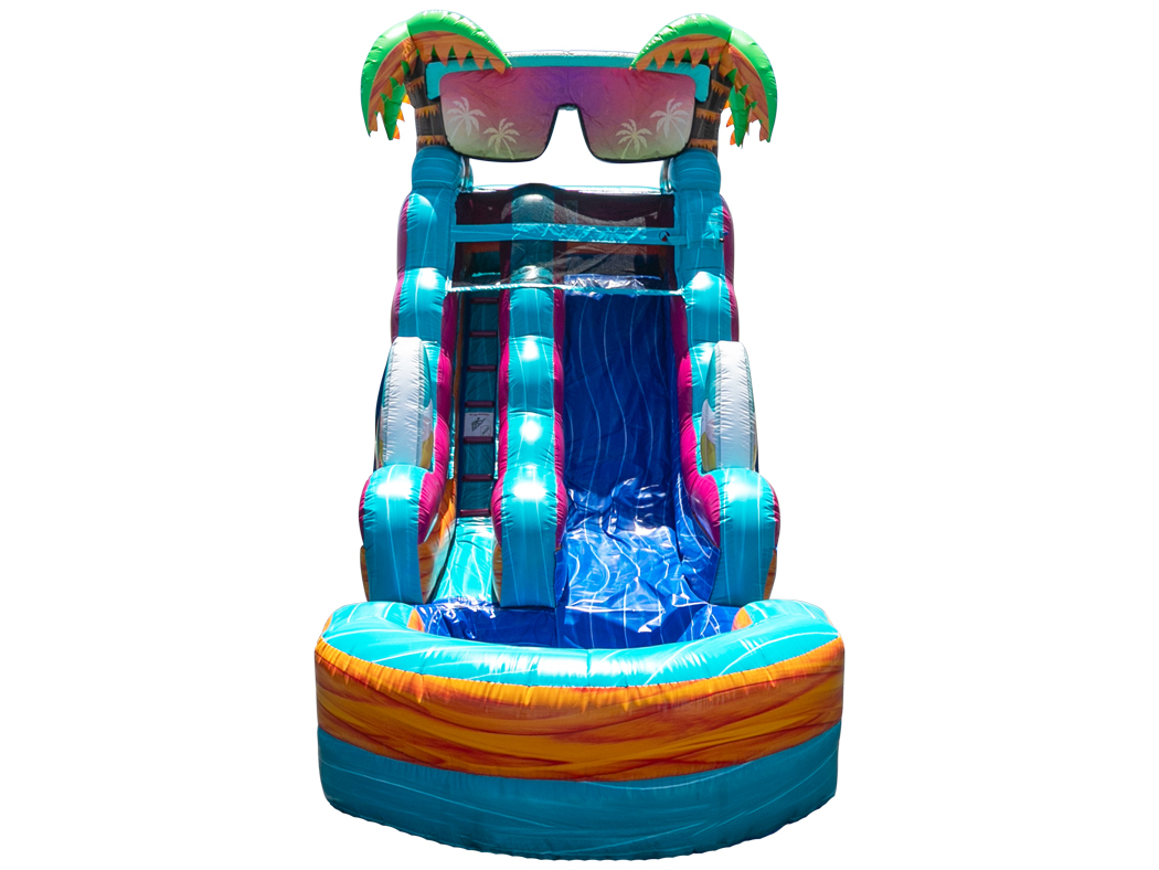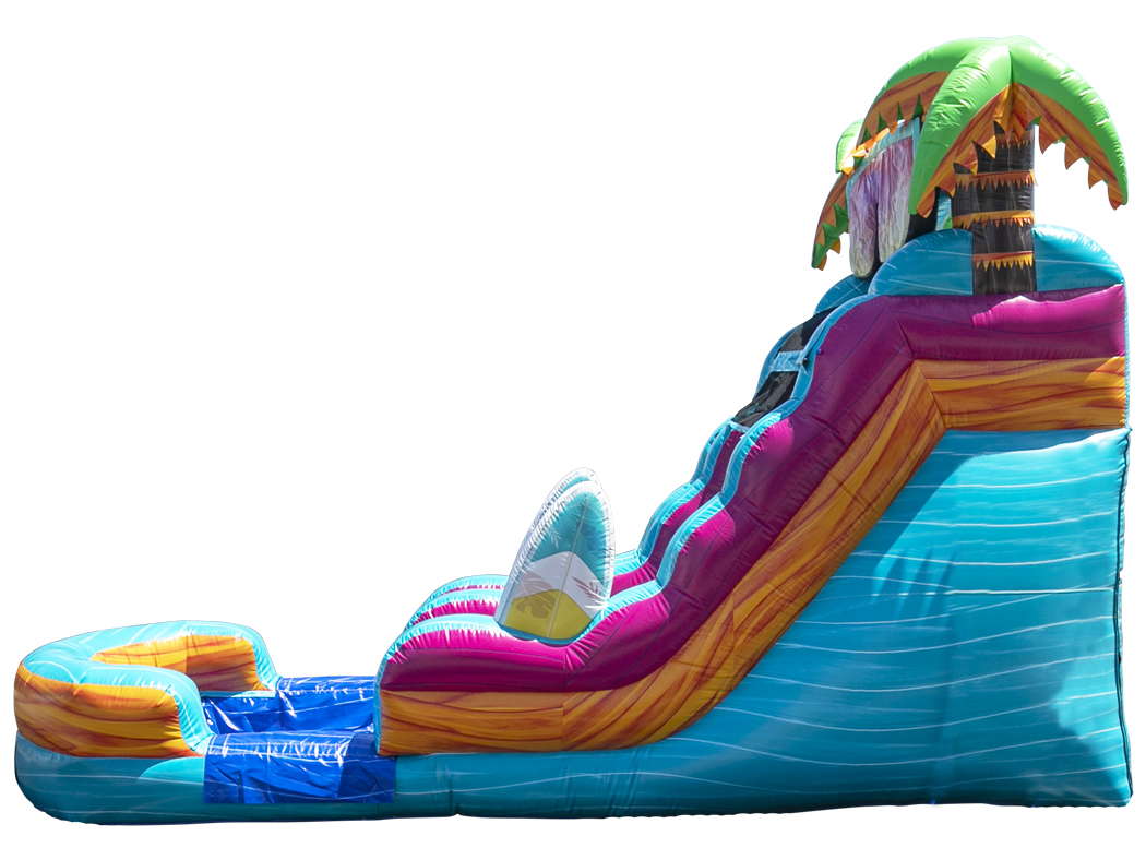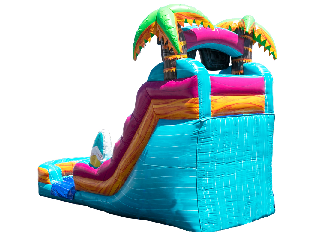 Our 16' Island Dry Slide is great for any occassion. It's bright, tropical inspired colors will make it the center of attention, providing lots of fun and entertainment for the kids. Adults are welcome to use it as well.