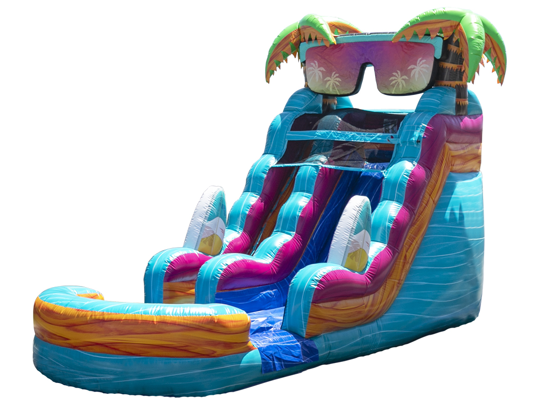 This bright, island themed water slide features a shallow splash landing and is guaranteed to keep you cool while providing hours of fun in the sun.